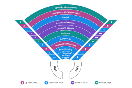 Laporan sektor pertambangan terbaru dari EY, Top 10 Business Risks and Opportunities for Mining and Metals in 2026, benar-benar menggelisahkan saya. Persis setelah halaman sampul, grafik kipas yang sangat terkenal itu—lihat gambar di bawah—menunjukkan bahwa kompleksitas operasional telah menyeruak ke posisi teratas, sementara keberlanjutan ada di posisi kesembilan. Lima ratus eksekutif senior dari perusahaan dengan pendapatan minimal satu miliar dolar telah disurvei. Mereka, orang-orang yang pada suatu hari di bulan Juni atau Juli tahun 2025, menjawab pertanyaan tentang apa saja yang membuat mereka tidak bisa tidur di malam hari. Bagi saya, yang menarik bukanlah bahwa jawaban mereka telah berubah dibandingkan tahun-tahun sebelumnya, tetapi bagaimana perubahan itu mengungkap sesuatu yang mendasar tentang momen sejarah industri ini.